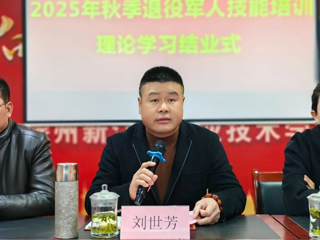 *后,新江南教育集团董事长刘世芳进行总结讲话。他高度评价了本期培训的成果,肯定了退役军人学员的优良素质和勤奋精神,强调学校将持续优化培训体系,为退役军人就业创业提供坚实保障。同时,号召各位退役军人学员带着责任与荣誉,立足岗位,开拓创新,实现人生价值。