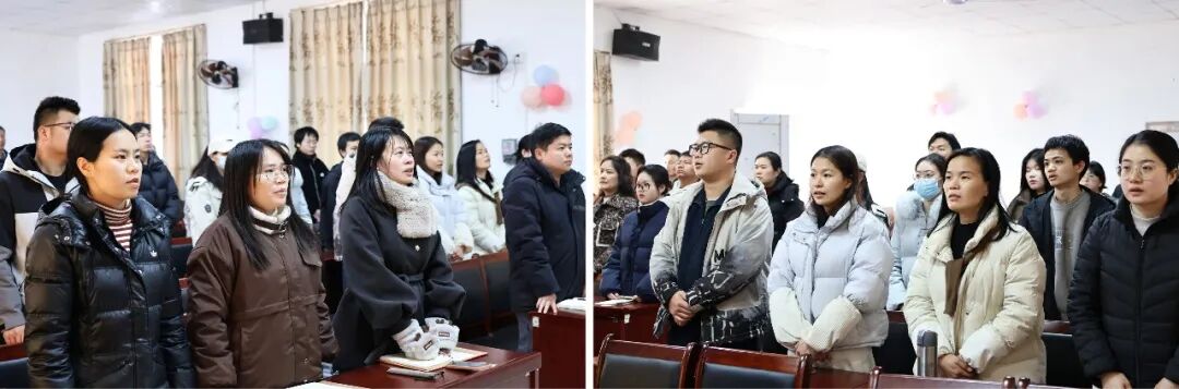 大会在庄严激昂的校歌声中拉开帷幕。每一位教职工的歌声里承载着对学校的无限热爱与忠诚担当,也凝聚起了携手前行的强大合力,为整场大会奠定了庄重而热烈的基调。
